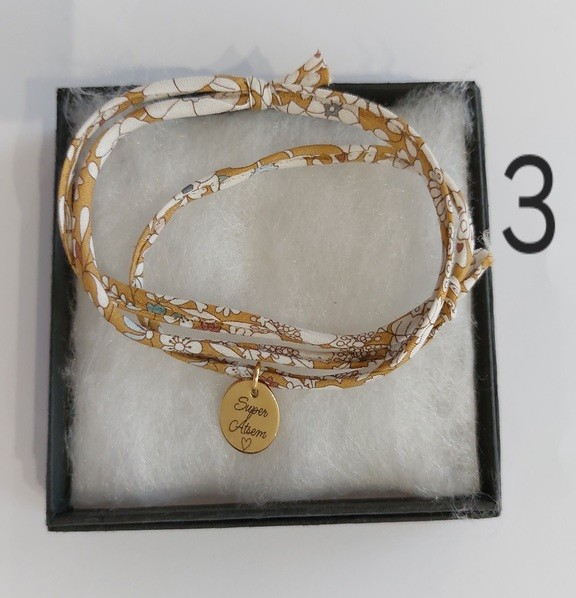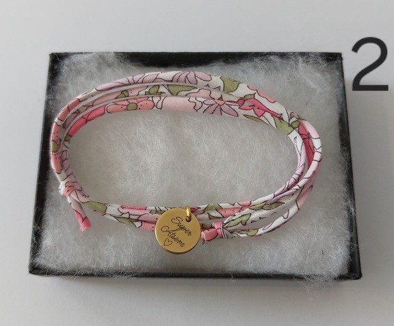 Bracelet Chaque médaillon en acier inoxydable est gravé en Normandie prés de Caen. Le ruban Liberty délicat apporte une touche tendance à votre poignet. Idéal pour offrir, ce bracelet réglable personnalisé fera plaisir à coup sûr. Pour le choix de la couleur, merci de me le transmettre par mail lors de la commande avec le numéro inscrit sur la photo