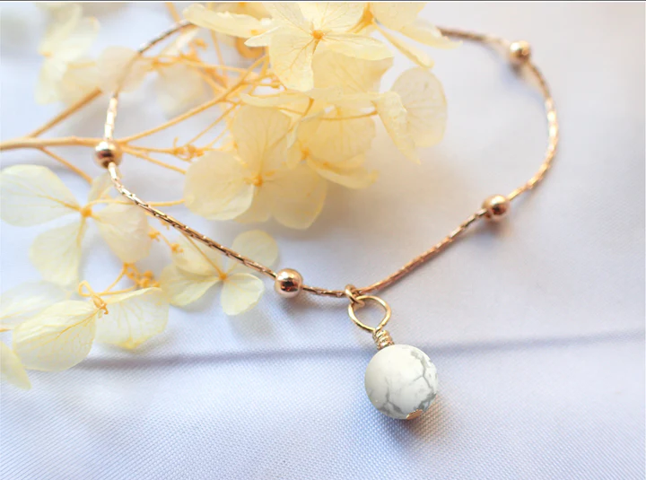 Des bijoux spirituels faits à la main en France, avec des pierres naturelles énergétiques Longueur : 18 cm Diamètre de la pierre : 8 mm Matériaux: Plaqué or 3 microns Pierre : Howlite Signe : Gémeaux, Bélier, Vierge, Sagittaire, Verseau.