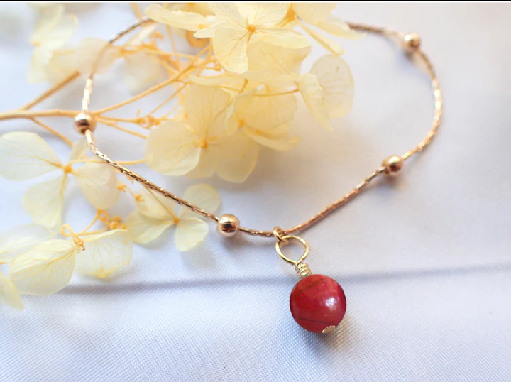 Des bijoux spirituels faits à la main en France, avec des pierres naturelles énergétiques Longueur : 18 cm Diamètre de la pierre : 8 mm Matériaux: Plaqué or 3 microns Pierre : Jaspe Rouge Signe : Bélier, Lion, Cancer
