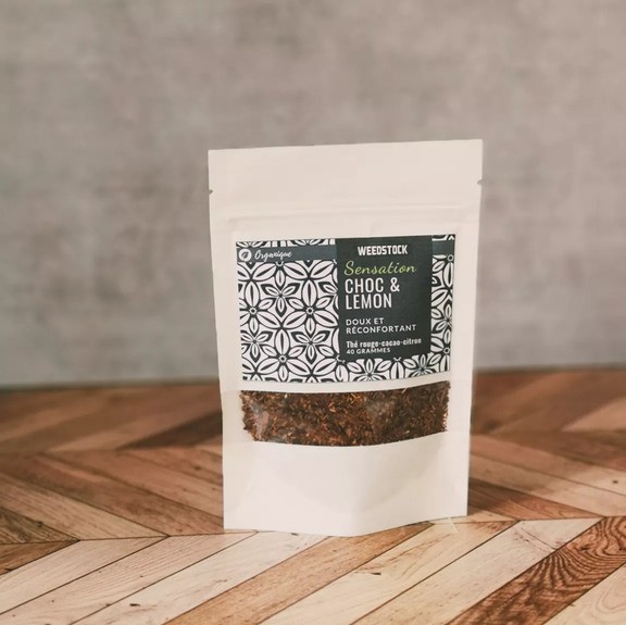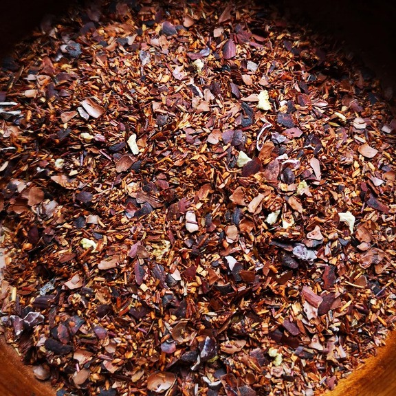 Ingrédients* : Rooibos nature, écorces de cacao, fèves de cacao, caramel (sucre, arôme naturel), écorces de citron (6%), arôme naturel - Sans théine