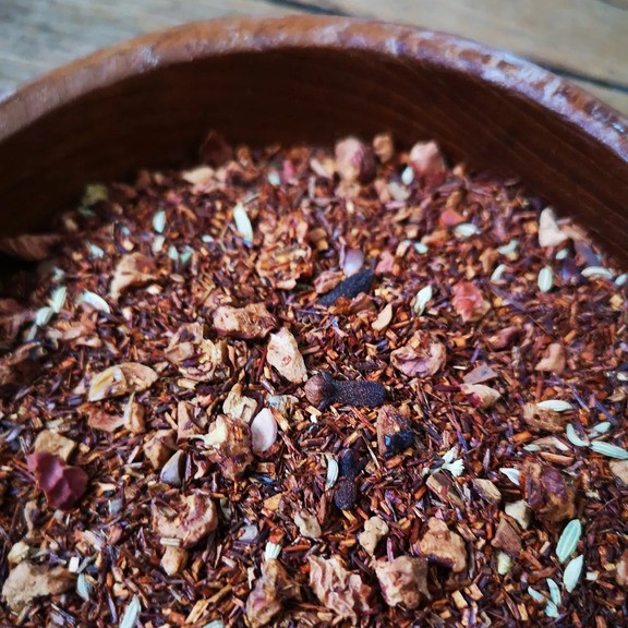 Ingrédients* : Rooibos, pomme (21%), bâtons de cannelle(6%), fenouil, arôme naturel, clou de girofle, racine de réglisse