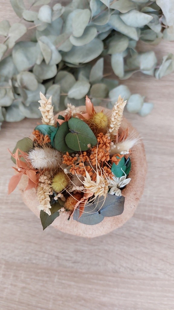 Coco Paulette Apportez une touche naturelle, exotique et champêtre dans votre décoration d’intérieure grâce à cette jolie composition florale « Paulette »! Intégrée dans un contenant 100% naturel, cette composition de fleurs séchées apportera exotisme et originalité à votre décoration d’intérieure, d’évènement ou tout simplement pour habiller vos tables de restaurants . Fabriquée en France – à la main – et décorée de fleurs séchées, cette composition vous accompagnera dans une ambiance bucolique et conviviale grâce à ses couleurs chatoyantes et naturelles! En effet, les lagurus de coloris terracotta soulignent un côté chaleureux et réconfortant. A poser délicatement en centre de table ou dans votre décoration, cette jolie composition de fleurs séchées fera merveille auprès de vos invités. Pas d’échange ou de retour possibl