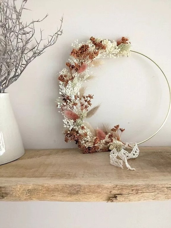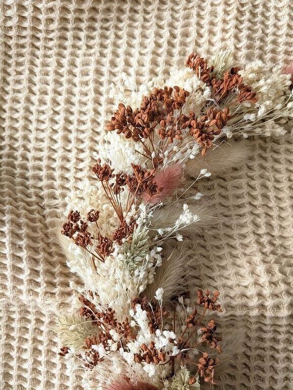 Couronne Emma Cette jolie couronne murale apportera une touche de poésie à votre intérieur! A la fois romantique et esthétique, les chatons souffleront un brin de douceur à votre décoration d’intérieur bohème et naturelle. Le carvi apporte du graphisme et un côté chaleureux à cette couronne grâce à son coloris terracotta. Le phalaris, grâce à ses petites têtes en forme d’épis secs, ajoutent un joli rendu harmonieux ! A suspendre ou a poser, la couronne "Emma" peut s'accrocher joliment chez vous et reflétera ainsi une décoration remplie de délicatesse, de charme et de légèreté. A offrir lors d’une belle occasion pour la naissance d'un enfant, un événement ou pour le plaisir d’offrir. Composition : phalaris / lagurus / broom bloom / carvi Pas d’échange ou de retour possible