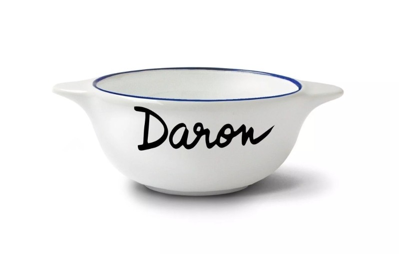 Daron Incontournable monument du kitsch régional, le fameux bol breton nous présente les nouveaux membres de sa famille recomposée. Les prénoms habituels cèdent leurs places à des messages actuels et amusants. À offrir sans modération pour s’éclater au petit-déjeuner ! Dimensions : Diam : 12 cm – ht : 6 cm – 30cl Matière : Faïence, filet bleu peint-main Impression : Émail cuit à très haute température – décors inaltérable Entretien : Lave-vaisselle ok – Micro-onde avec modération