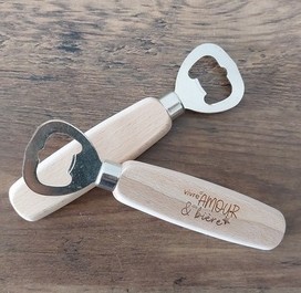 Pour les amoureux des bières ce décapsuleur sera un cadeau indispensable !!! Dimensions Longueur : 14,40 cm. Hauteur : 1,90 cm. Largueur : 3,90 cm. Matériaux Bois de hêtre