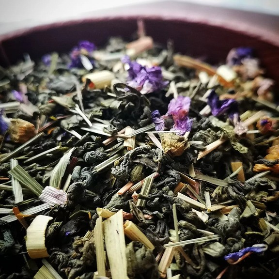 Ingrédients* : Thé vert China Gunpowder (74%), citronnelle (10%), maté vert (6%), arôme naturel, thé blanc Mao Feng, thé noir Golden Yunnan OP, écorces de citron, mauve, prêle, abricot, dent-de-lion, thé vert Matcha, spiruline, guarana