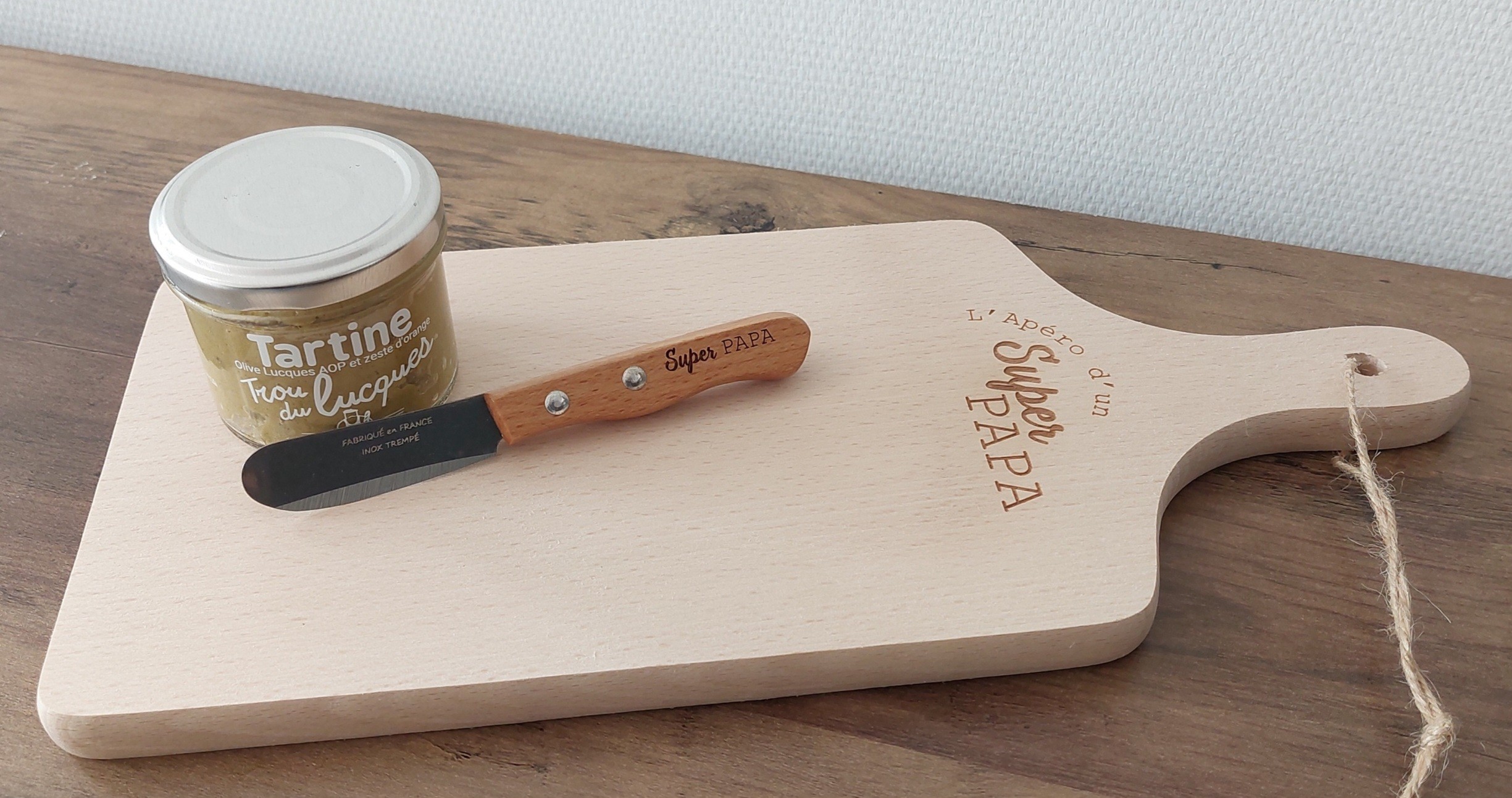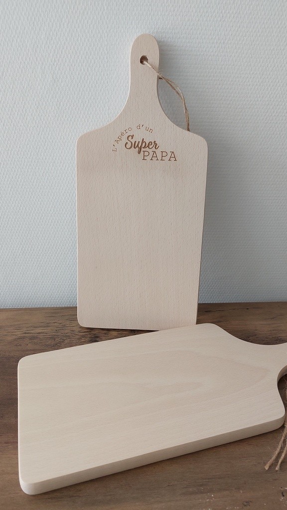 Ecologique, pratique et robuste, cette planche à découper gravée en hêtre est l'accessoire indispensable à avoir dans votre cuisine. Cette planche à découper gravée en hêtre permet de concocter des petits plats sans abimer votre plan de travail, elle sert aussi à la présentation de vos apéro ou brunch. Avec la jolie phrase gravée sur cette planche vous pourrez l'offrir comme cadeau pour toutes sortes d'occasion, comme la St Valentin, un repas entre amis, une fête, une pendaison de crémaillère,... Les membres de votre famille, vos amis,.. seront ravis de cette attention qui leur servira au quotidien et ils s'en souviendront longtemps. 30X13cm (manche compris)