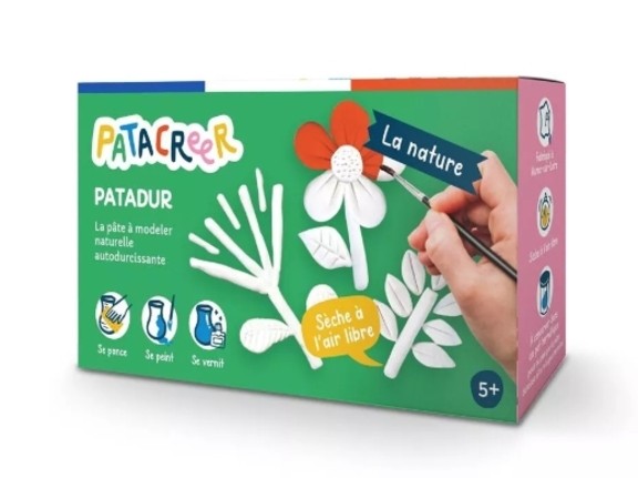 2 pains de 80G de PATADUR (pate a modeler séchante) et une notice pour apprendre à modeler en toute simplicité. Une fleur, un arbre, la planète, vous pouvez TOUT créer selon votre imagination !