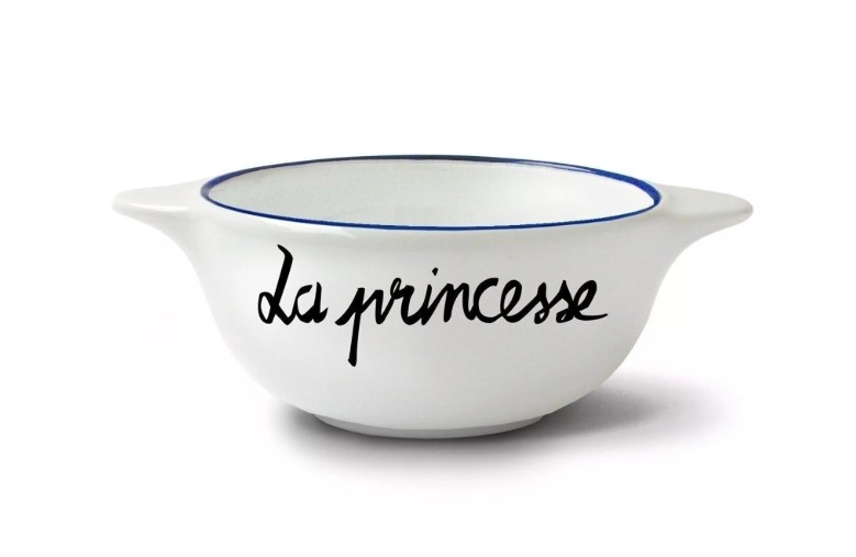 La princesse Incontournable monument du kitsch régional, le fameux bol breton nous présente les nouveaux membres de sa famille recomposée. Les prénoms habituels cèdent leurs places à des messages actuels et amusants. À offrir sans modération pour s’éclater au petit-déjeuner ! Dimensions : Diam : 12 cm – ht : 6 cm – 30cl Matière : Faïence, filet bleu peint-main Impression : Émail cuit à très haute température – décors inaltérable Entretien : Lave-vaisselle ok – Micro-onde avec modération