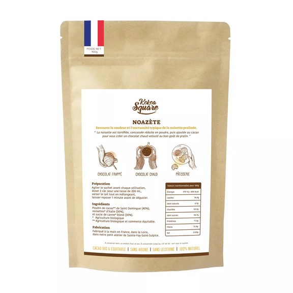 Nous l'ajoutons ensuite au cacao pure origine de Madagascar pour vous offrir une poudre pour chocolats chauds veloutés au bon goût de pralin.