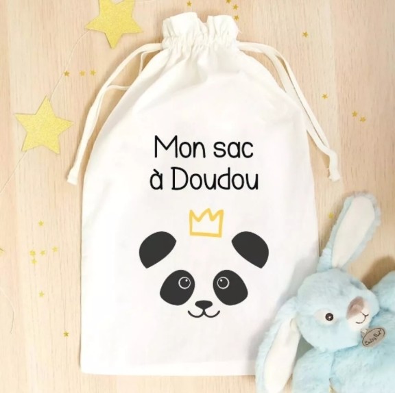 Découvrez le sac à doudou 100% coton doux bio, avec une fermeture à double cordon dans le même tissu. Sur le sac à doudou, nous avons comme dessin un amusant panda avec une couronne. Ce sac est très pratique pour y ranger les affaires à votre enfant et surtout ses doudous ! Vous pouvez emmener ce sac à doudou chez la nounou, à la maternelle afin que votre enfant puisse prendre son doudou n'importe où. Dimension : 30 x 45 cm