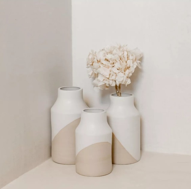 La ligne de ce vase est inspirée des pots de lait en métal. Sa forme simple et épurée saura mettre en valeur vos bouquets séchés. Le vase "Pot de lait" en version Half white Largeur goulot: 5 cm hauteur: 15 cm Les vases sont réalisés grâce à la technique du tour à l'atelier. Chaque pièce est une création artisanale unique. Elles peuvent donc avoir de légères variations de forme, de couleur et d'épaisseur.